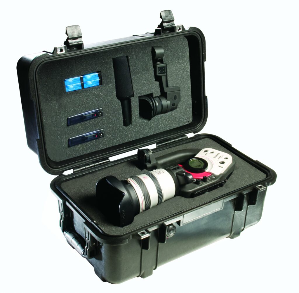 Peli™ är 100% vattentät tack vare en o-ring i som tätar mellan lock och botten. Peli™ är utrustad med en automatisk tryckutjämningsventil för att reglera tryckförändringar vid flygtransport eller stora temperaturskillnader. Peli™ blir inte bucklig av oöm behandling, den rostar inte och skulle den mot förmodan gå sönder så ersätter vi med en ny väska.